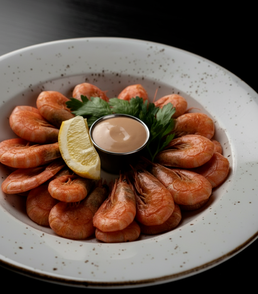Креветки северные жареные в соевом соусе