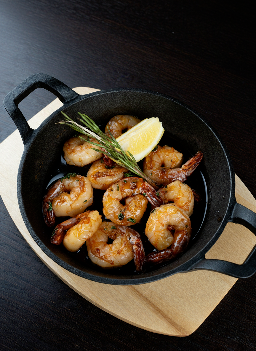 Королевские креветки жареные в винном соусе